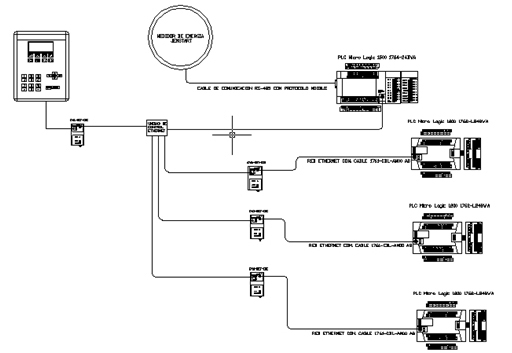 Equipamiento: PLC CompactLogix Allen Bradley, HMI Panel View Plus 1000 Allen Bradley, Módulos Remotos Point I/O, Relés Inteligentes E1PLus, Red de Comunicación Ethernet. |
